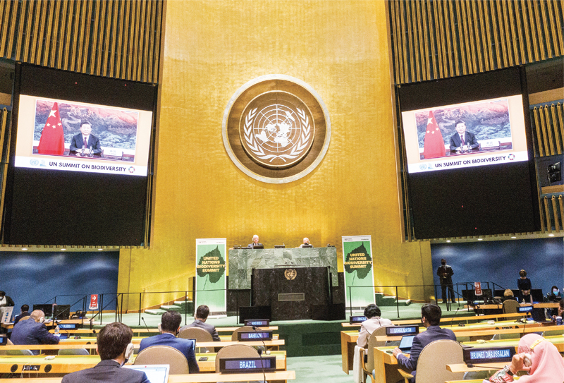2020年9月30日,國家主席習近平在聯(lián)合國生物多樣性峰會(huì )上通過(guò)視頻發(fā)表重要講話(huà)。 新華社發(fā)