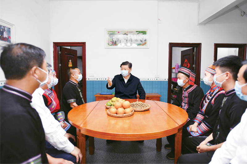 2020年9月16日至18日,中共中央總書(shū)記、國家主席、中央軍委主席習近平在湖南考察。這是16日下午,在郴州市汝城縣文明瑤族鄉沙洲瑤族村,習近平同村民朱小紅一家拉家常。 新華社記者 謝環(huán)馳/攝