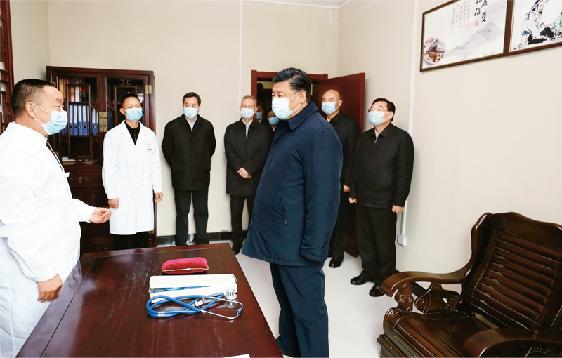 2020年4月20日至23日,中共中央總書(shū)記、國家主席、中央軍委主席習近平在陜西考察。這是4月21日,習近平在安康市平利縣老縣鎮衛生院,了解基層衛生防疫、醫療保障工作。 新華社記者 鞠鵬/攝